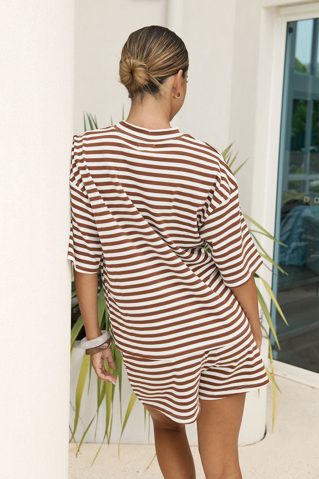 CHRISTINE SET - BROWN+WHITE STRIPE
