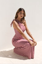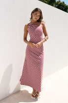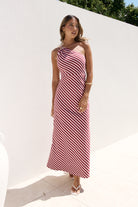 ZARAH MAXI DRESS- DEEP RED AND PINK STRIPE