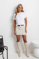 From business casual to girly chic, our Irina Skirt is the perfect bottom for a classy look. Elevate any outfit with this neutral pick, featuring tailored details that flatters every girl. Tag us with #littlejcboutique.