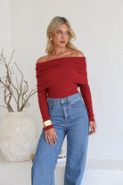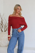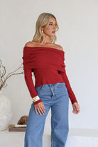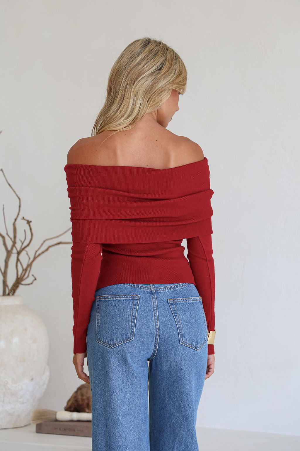 ISLA OFF SHOULDER KNIT TOP- DEEP RED